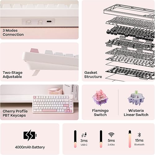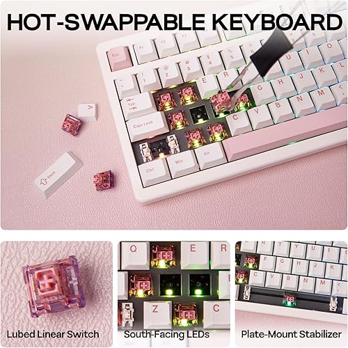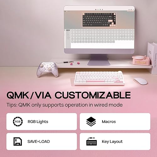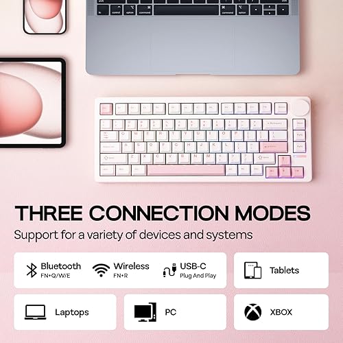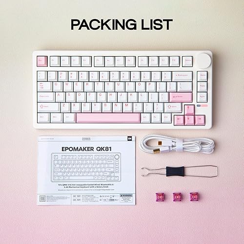 EPOMAKER QK81 75% Tastiera da Gioco Meccanica Senza Fili, QMK/VIA Programmabile, Hot-Swap, 81 Tasti con Manopola in Metallo, 2,4Ghz/BT/USB, Creamy Gasket-Mount, RGB Backlight (Nero, Wisteria Linear)