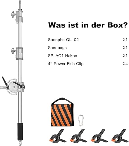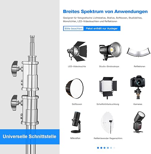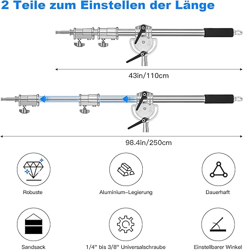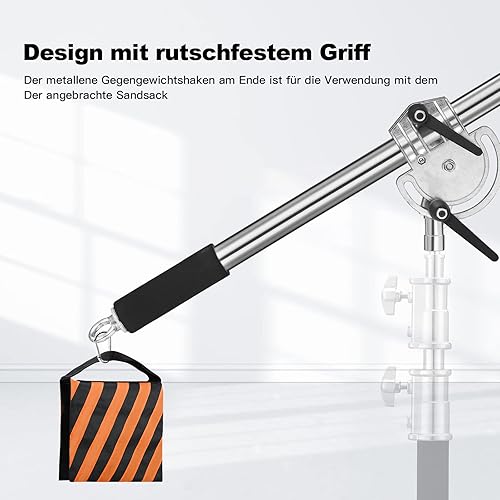 Braccio di Estensione in Metallo per Stativo C, C Stand Pro Contrappeso Boom da 3,6 Piedi a 8,2 Piedi, Interfaccia Universale con Sacchetto di Sabbia per Riflettore Monoluce C Stand da Studio