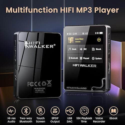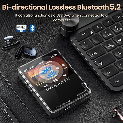 HIFI WALKER Lettore MP3 con Bluetooth 5.2, lettore MP3 da 128 GB, touch screen, DAC HiFi per un suono senza perdite: il lettore musicale digitale ad alta risoluzione supporta DSD e fino a 512 GB