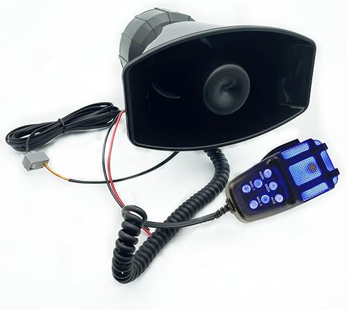 YIYIDA Car Horn Clacson per auto Corno d'aria 135db Corno di Allarme Sirena Corno 7 Tono blu e nero Corno elettrico Car sirena con Mic PA Speaker System Corno d'allarme per 12V auto camion nave ecc