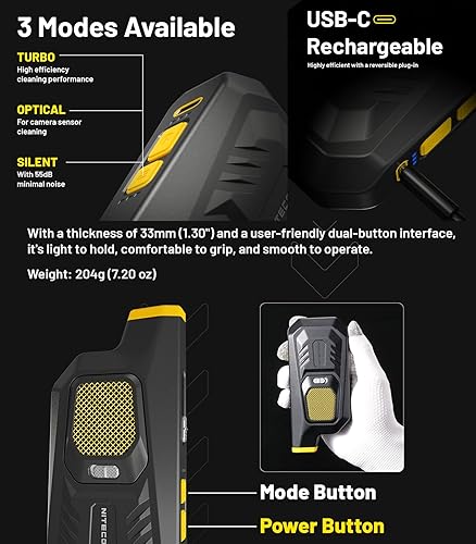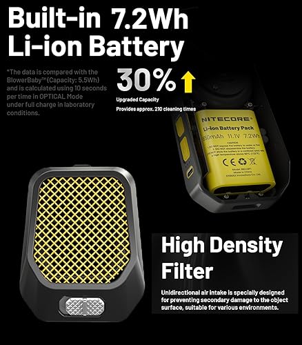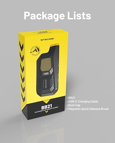 Nitecore Blowerbaby BB21 Aeratore elettronico per pulizia versione 2023, rimozione polvere 2,7kPa Pressione del vento, con spazzola a sgancio rapido, per pulizia obiettivo fotocamera e altro