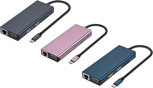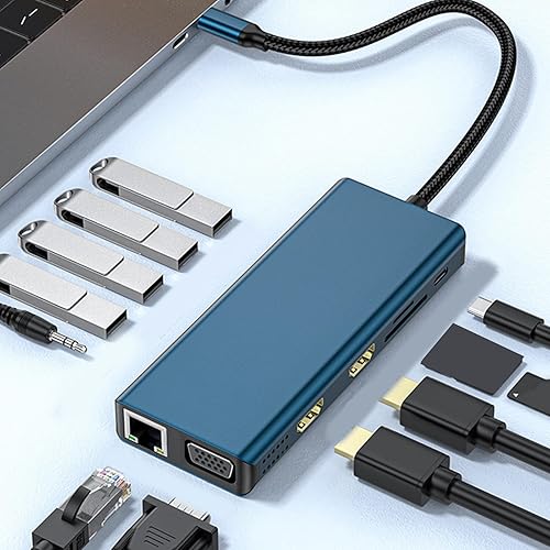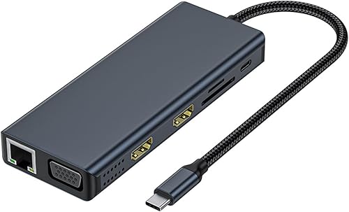 CHAKAE Docking Station Doppio Monitor 12 In 1 Adattatore USB C Adattatore Multiport 4 Porta USB VGA Lettore di Schede Ethernet Per Laptop