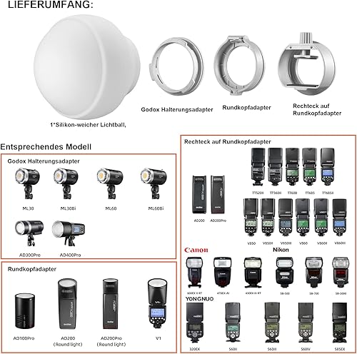 Godox AK-R22 Cupola di Diffusione,Epieghevole Materiale Siliconico, per i flash Godox a testa tonda Godox AD100PRO, AD200PRO (con H200R),di diffusione per la serie di flash per fotocamere Godox V1