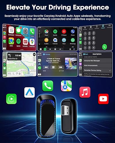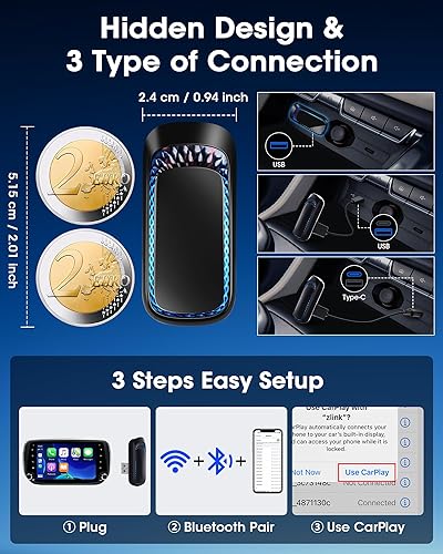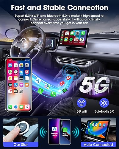 【2 in 1】Carplay Wireless Android Auto Wireless 2 in 1 Adattatore Carplay Android Auto Wireless, 5GHz WiFi Type-C/USB Plug-and-Play RGB, Trasmissione Veloce, Facile da Usare