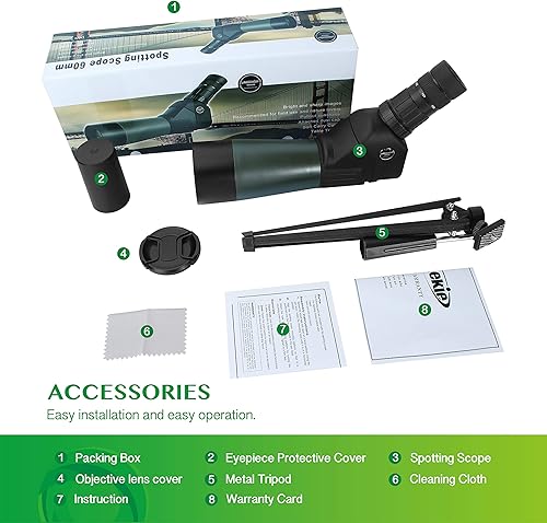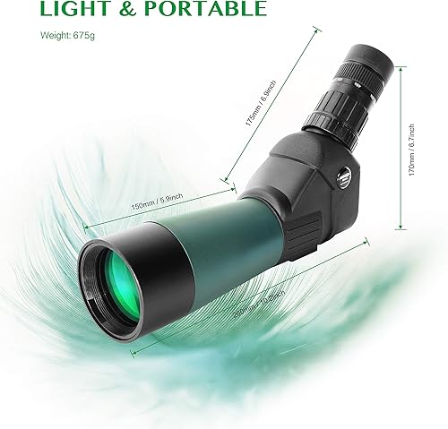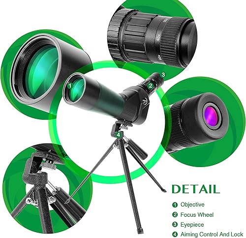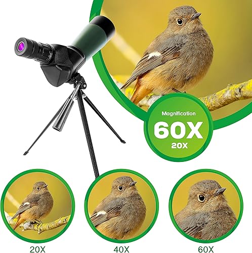 Aomekie Cannocchiale 20-60x60 Telescopio Spotting Scope FMC Ottica BAK4 Prisma Cannocchiale con Adattatore Telefonico Treppiedi