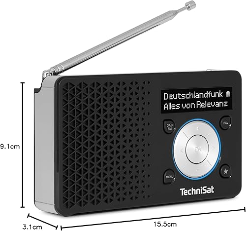 TechniSat DIGITRADIO 1 - Radio DAB+ portatile con batteria ricaricabile (DAB, VHF, Altoparlante, Ingresso per cuffie, Memoria preferiti, Display OLED, Compatta, 1 Watt RMS), Nero/Argento