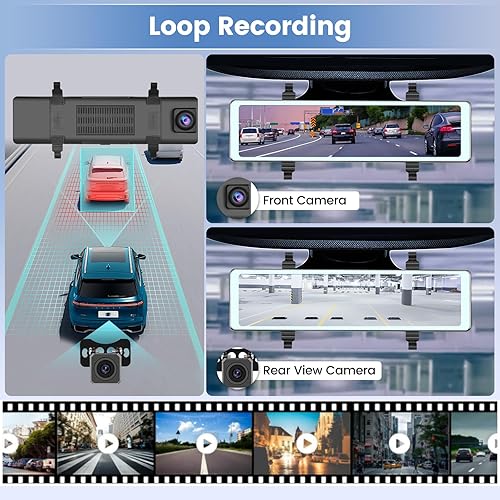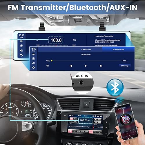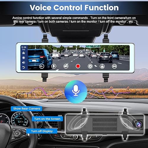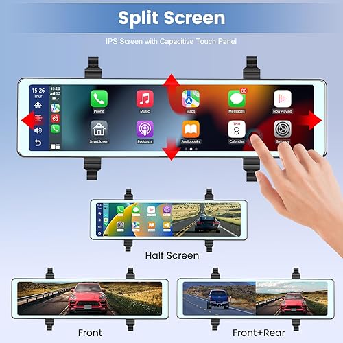 Specchietto Retrovisore Auto con Senza Fili Carplay e Android Auto - 11,26 Pollici IPS Dash Cam specchietto con Doppia Telecamera Anteriore e Posteriore Controllo Vocale Bluetooth FM AUX+64GB Card