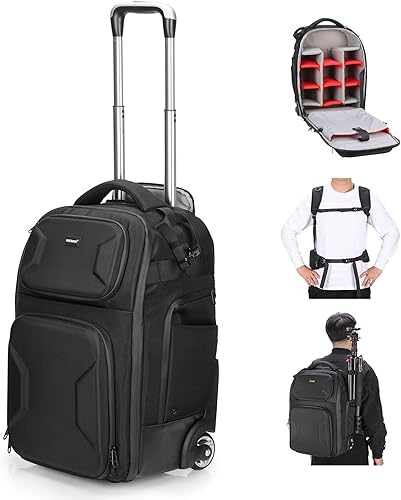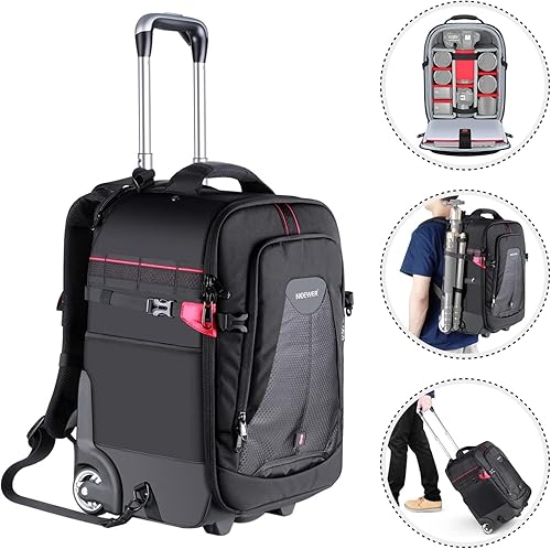 NEEWER Zaino Scorrevole per Fotocamera SLR/DSLR,Treppiedi, Obiettivi, Stile Valigia Convertibile con Doppia Maniglia, Antiurto, con Scomparti Imbottiti Rimovibili