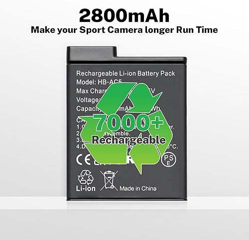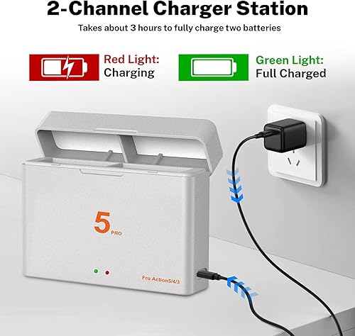 Confezione da 2 batterie di ricambio da 2800 mAh compatibili per DJI Osmo Action 5 Pro con caricabatterie USB-C a doppio slot per fotocamere OSMO Action 5 Pro, Action 4, Action 3