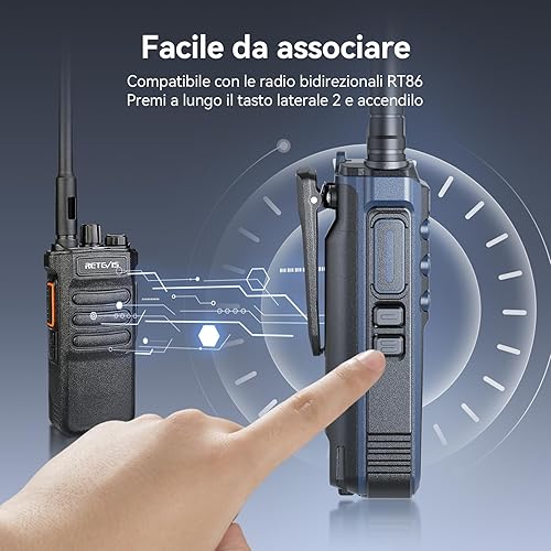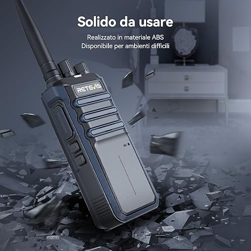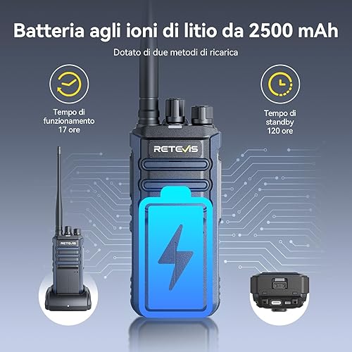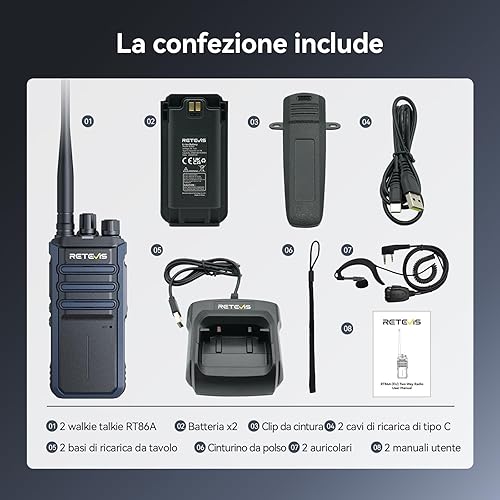 Retevis RT86S Walkie Talkie Professionali, Ricetrasmittenti a Lungo Raggio, Display LCD 2600mAh USB C, Chiamata Gruppo, Walkie Talkie con Auricolari per Produzione (Nero, 2 Pezzi)