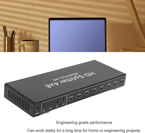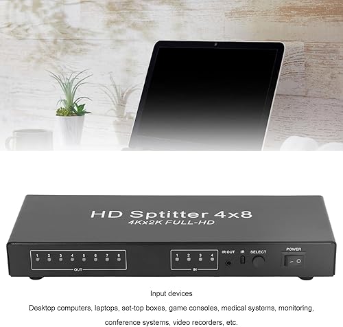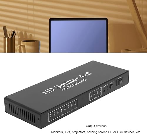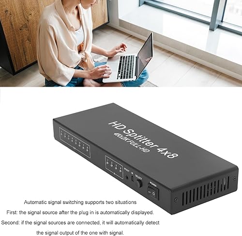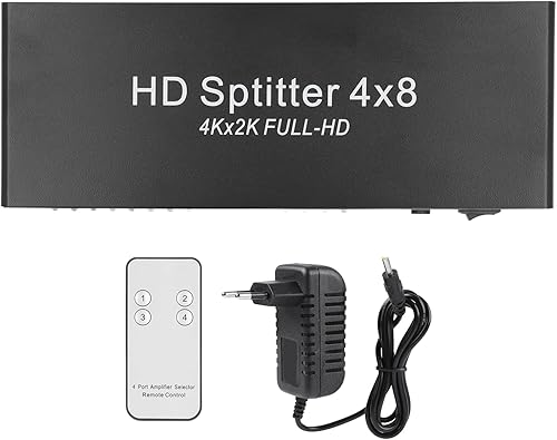 HDMI 4 in 8 Uscite, Interfaccia Multimediale HD 4x8 Splitter HDMI con Telecomando, Commutatore HDMI Automatico Connettore Multiplo HDMI Supporta 4K UHD per TV per