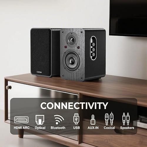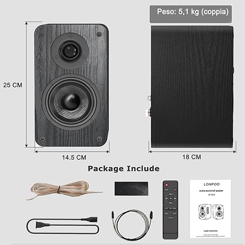 LP-42X Attivi Diffusori da scaffale 100W RMS, connettività HDMI ARC, Ottica, Coassiale, Bluetooth, USB, AUX-in, con controllo alti/bassi, telecomando