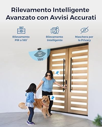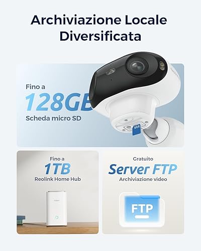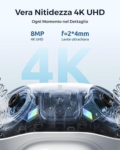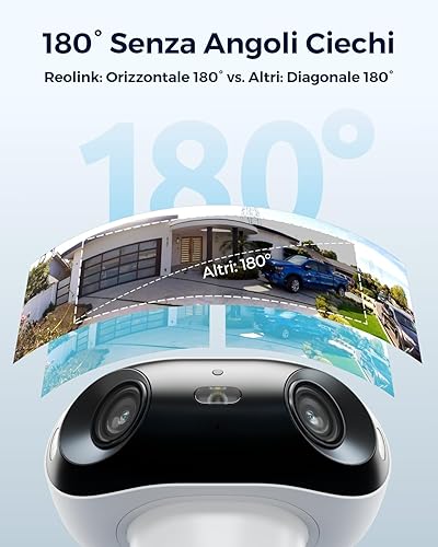 Reolink 4K Telecamera Wi-Fi Esterno 180° Senza Fili, Doppia Lente F1.0, Visione Notturna a Colori, Sorveglianza Wireless, Rilevamento Smart, Archiviazione Locale, Installazione Facile, Argus 4 Pro