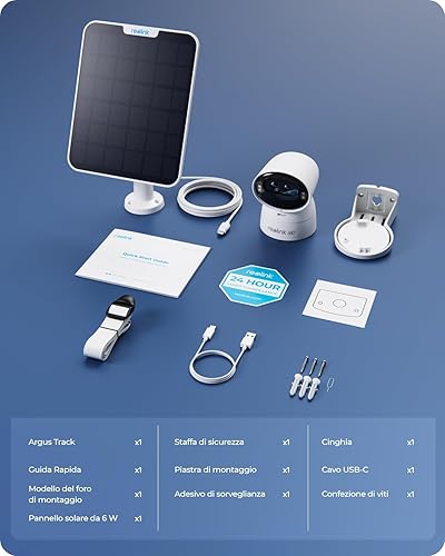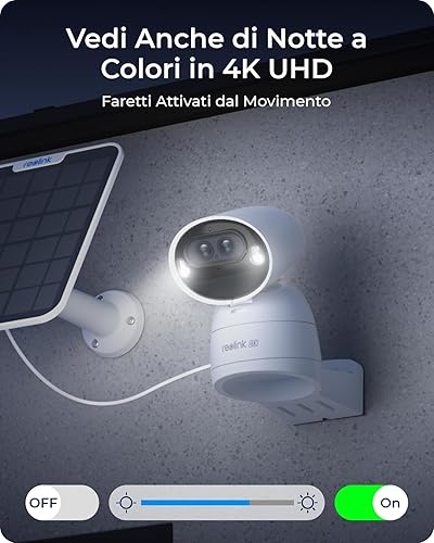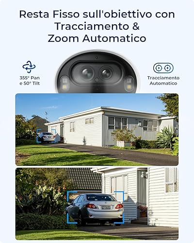 Reolink 4K Telecamera Wi-Fi Esterno Senza Fili a Batteria, Auto-Tracking & Zoom, Doppia Lente, Videosorveglianza WiFi 2,4/5 GHz, Visione Notturna a Colori, Rilevamento AI, Argus Track+Pannello Solare