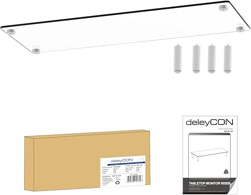 deleyCON Monitor Stand max. 20Kg 4 Piedini - Sostegno Rialzo - per Desktop PC Display TV - Bianco