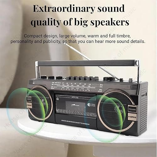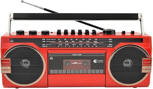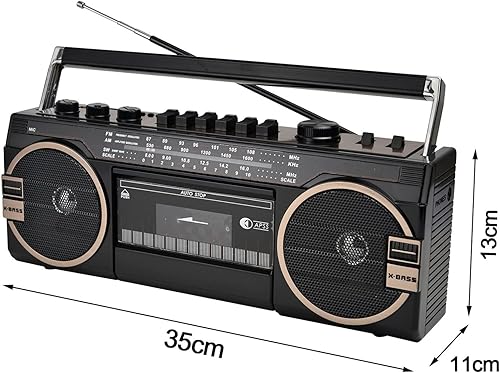 Boombox per Lettore CD retrò Stile Classico Anni '80, Radio per Lettore di Cassette Portatile, Radio AM/FM, registratore a Cassette Bluetooth con manopole di Regolazione del Volume A