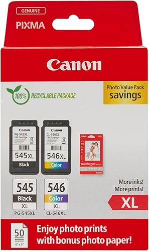 Canon PG-545 XL CL-546 XL VALUE SEC Confezione da 2 Cartucce d'inchiostro (Nero XL colore XL +50 fogli di carta fotografica 10x15cm 2024 SEC), Cartone Riciclabile 2024
