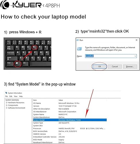 K KYUER 56Wh 4P8PH G05H0 Laptop Batteria per Dell Inspiron 15 7000 Series 7547 7548 Inspiron N7547 N7548 Vostro 14 5459 Series Type P41F P41F001 P68G P68G001 0G05H0 0G05HO Notebook Battery