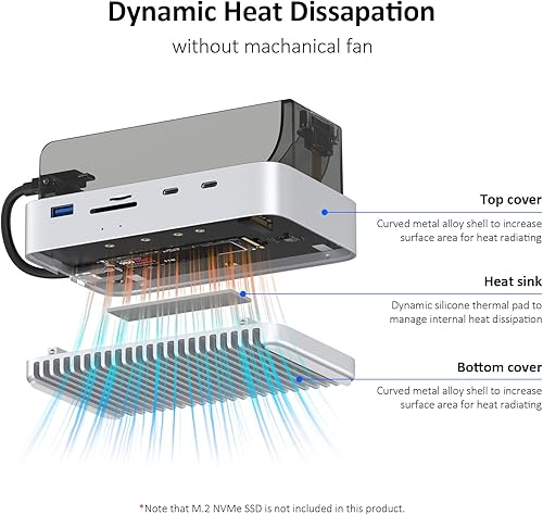 Gewokliy Mac mini M4 2024 Dock Stand, 40Gbps USB4 M.2 NVMe SSD Enclosure, compatibile con Thunderbolt 4/5, 10Gbps USB Docking Station con lettore di schede SD4.0