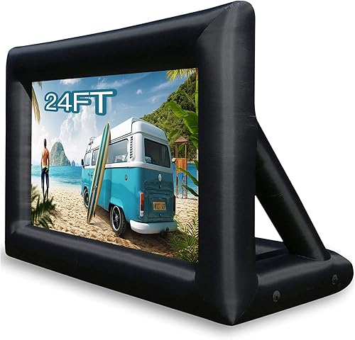 BIXUYOU Schermo per proiettore Portatile HD 16:9, proiezione Frontale e Posteriore Senza interruzioni, Schermo Gonfiabile per Interni ed Esterni, con soffiatore d'Aria e Cinghie di Tensione.