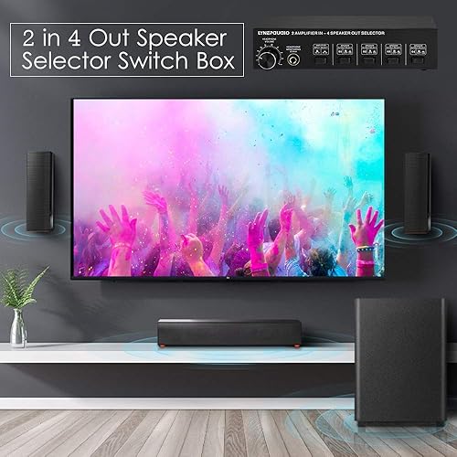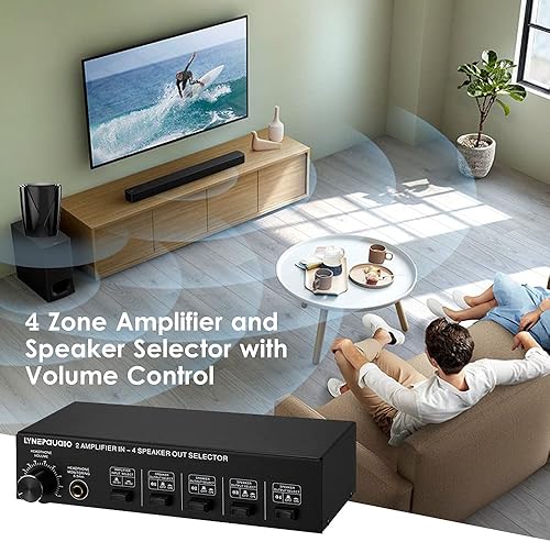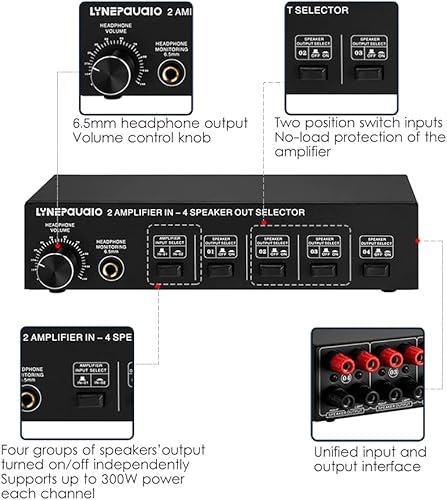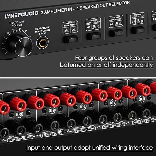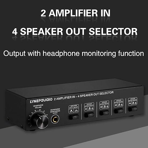 YIWEOG Selettore Altoparlanti 2 in 4 out Box Amplificatore a 4 Zone e selettore Altoparlanti con Controllo del Volume Jack a Banana Jack da 6,5 mm per Auricolari
