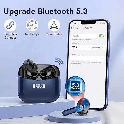 FAMOO Cuffie Bluetooth, senza fili, Bluetooth 5.3, con 4 auricolari ENC Cancelling Mic Wireless Earbuds