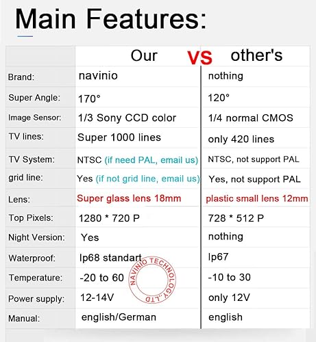 Kesafe KN101CM - Telecamera posteriore con doppia lente e CCD a colori, visione notturna, grandangolare, con connettore a 4 pin (bianco)