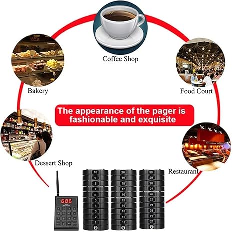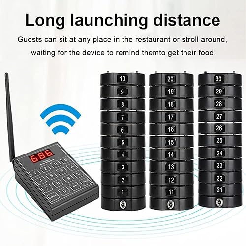 Sistema cercapersone Ristorante, Tastiera di Chiamata da 1 Pezzo 999 canali + sottobicchieri da 10/20/30 Pezzi, 3 modalità di Chiamata, Sistema di Chiamata Wireless in Coda (30pagers)