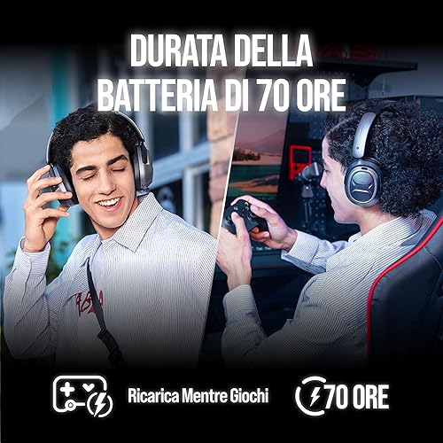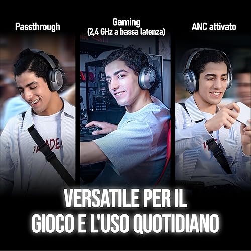 OXS Storm A2 Cuffie da Gioco Wireless, Cancellazione Attiva del Rumore, Bluetooth 5.4 & Bassa Latenza 2,4 GHz, Doppia Modalità EQ, 70 Ore di Batteria, per PC, PS4, PS5, Switch e Cellulare, Nero