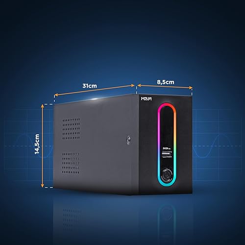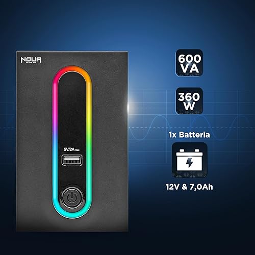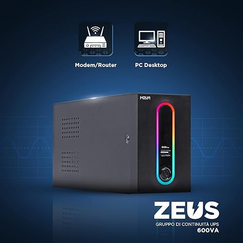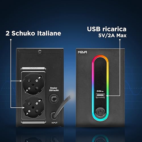 Noua Zeus 1200VA RGB Gruppo di Continuità per Computer PC UPS Line Interactive 1200VA / 720 Watt, AVR, 4 Uscite Schuko, Porta di Ricarica USB 5V/2A