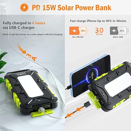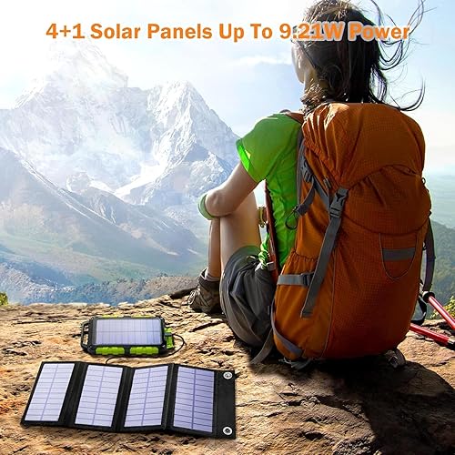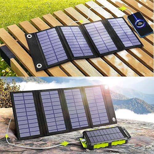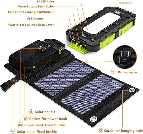 Pannello Solare Portatile 8W con Power Bank Solare 20000mAh, PD15 W Caricabatterie Solare USB C con 3 Uscite 2 Ingressi, Power Bank Pannello Solare Compatibile per Smartphone, Tablet e Altro