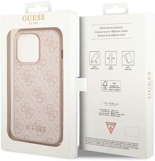 GUESS GUHCP14XG4GFPI - Custodia rigida per iPhone 14 Pro Max 6, 7', con logo oro metallico, rosa