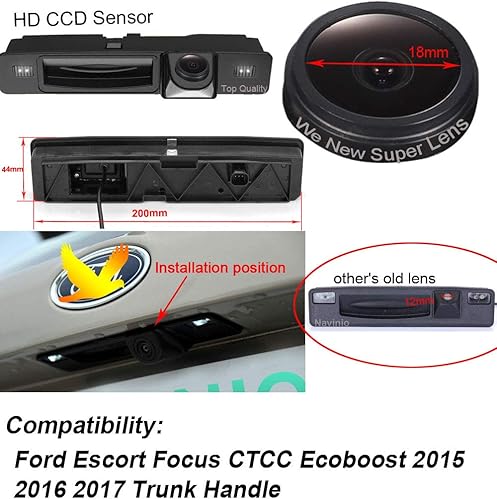 Navinio Bagagliaio Maniglia fotografica di sostegno di retrovisione Videocamera HD Auto Telecamera Posteriore Visualizzazione la Linea Guida per Ford Escort Focus CTCC Ecoboost