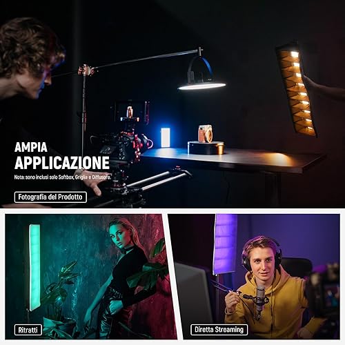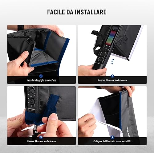 NEEWER Kit Diffusore di Luce LED per Barra Luminosa LED RGB TL60, Diffusore a Striscia con Griglia a Nido d'Ape, Borsa da Trasporto, Chiusure a Strappo per Foto Video Streaming Live Ritratti, NS9S