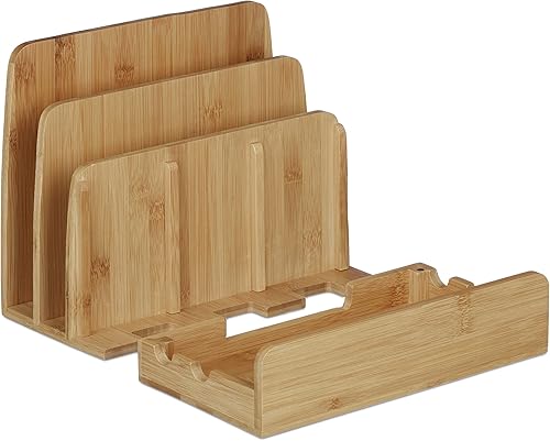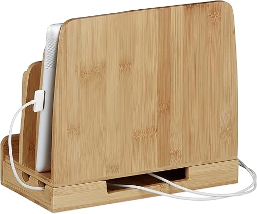 Relaxdays Portaoggetti Ricarica Multipla, Nascondi Cavi, Salvaspazio, Universale, HxLxP: 23 x 25,5 x 13,5 cm, Naturale, bambù, 13.5 x 25.5 x 23 cm