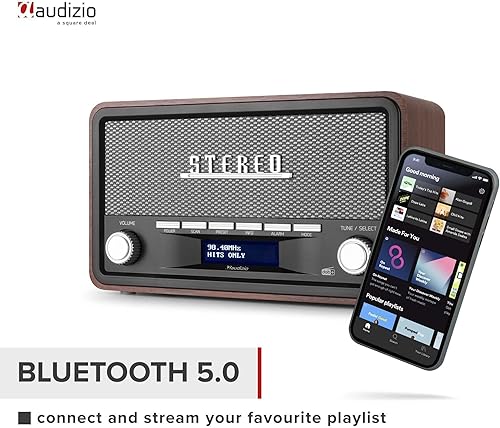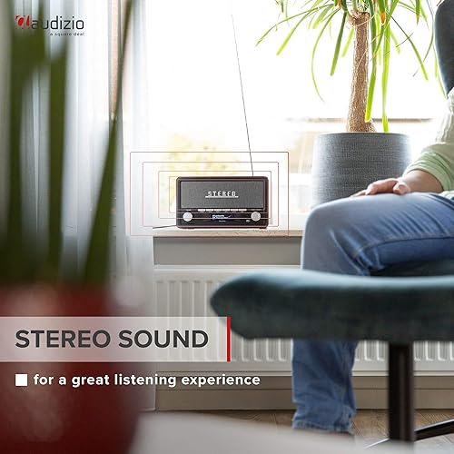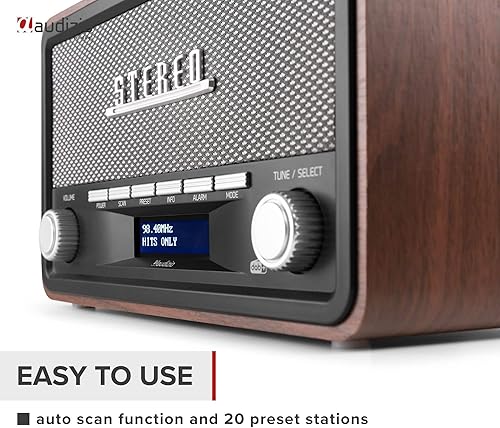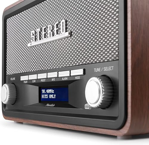Audizio Foggia, Retro Radio, DAB Plus Radio, Bluetooth, Alimentazione a batteria, Radiosveglia, FM, 20 slot di memoria, AUX, Allarme Radio Cucina Vintage, Grigio