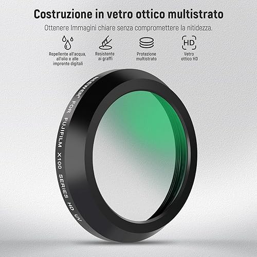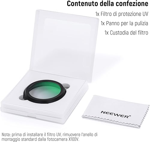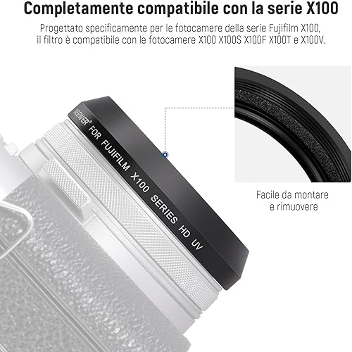 NEEWER Filtro di Protezione UV per Fotocamere Serie X100, Vetro Ottico Multistrato HD Accessorio per Filtro Lente Compatibile con Fujifilm X100 X100S X100F X100T X100V X100VI (Telaio Argento)