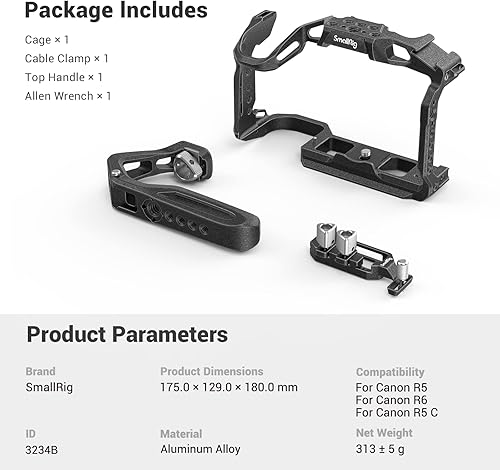 SMALLRIG R5 Cage R5C Cage R6 Cage Kit Gabbia in Lega di Alluminio con Maniglia Superiore e Morsetto per Cavo Dedicato per Canon R5 R5C e R6-3234B