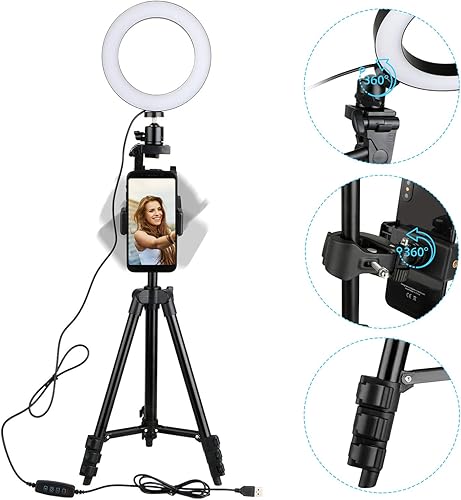 Thlevel 6,2' Ring Light, Luce ad Anello LED con Treppiede e Supporto per Cellulare, 3 Modalità Colore e 10 Livelli di Luminosità per YouTube, Tik Tok, Trucco, Fotografia, Selfie