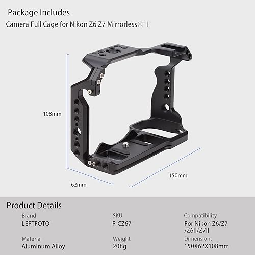 Fotocamera Full Cage per Nikon Z6 Z7 Mirrorless,Estensione Mount Microfono Riempimento Luce Staffa Accessori Filmatura, con Cold Shoe