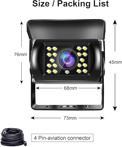 Telecamera Retromarcia Visione Notturna a Infrarossi Senza Linea Guida Senza Cambiamento di Colore IP67 Impermeabile 4 Pin Aviation Connettore Telecamera Posteriore per Bus/RV/Furgoni/Camion/Rimorchi