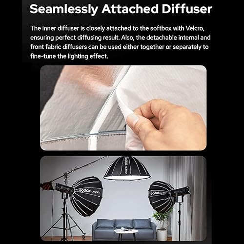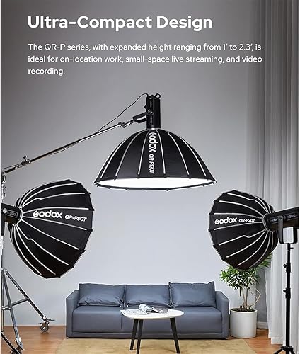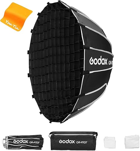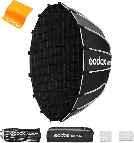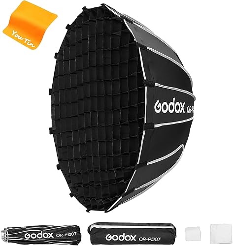 GODOX QR-P120T Softbox 120 cm, Parabolica a Sgancio Rapido Con Griglia, Profondità 56,7 cm per MS300-V SK400II QT400III QT600III SL60II e Studio Video Light
