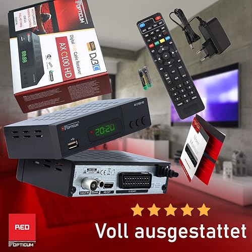 Ricevitore via cavo RED OPTICUM AX C100 HD con funzione di registrazione PVR I digitale Ricevitore via cavo HD - EPG - HDMI - USB - SCART - Ricevitore audio coassiale I per TV via cavo, nero