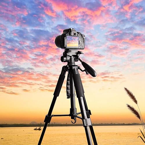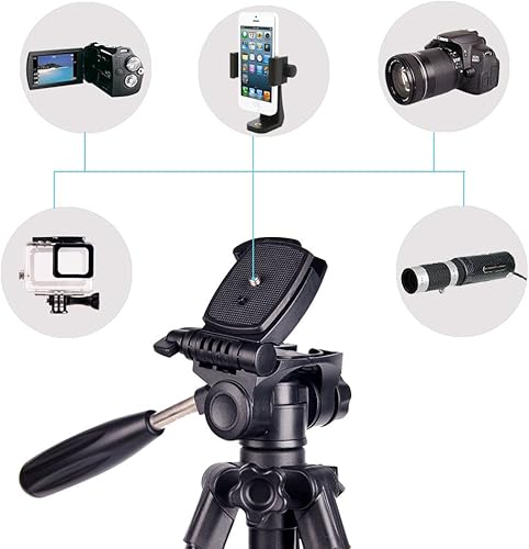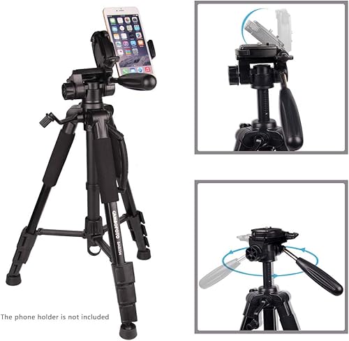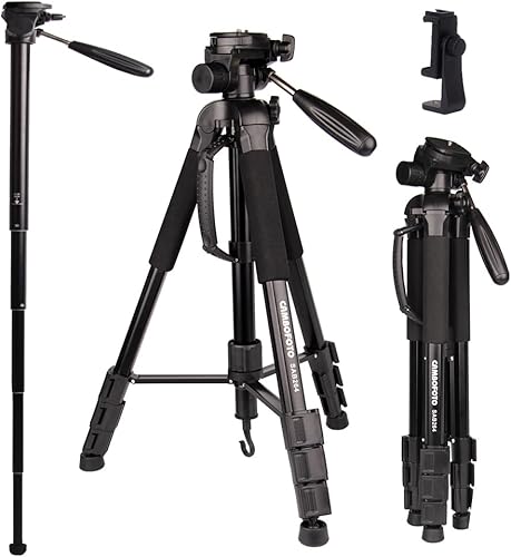 Treppiede per Fotocamera 176,5CM con Monopiede, Treppiede in Lega di Alluminio con Supporto per Smartphone, Compatibile con Fotocamere DSLR, Videocamere, Smartphone, Carico Massimo 4KG