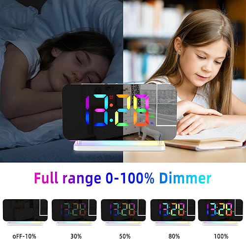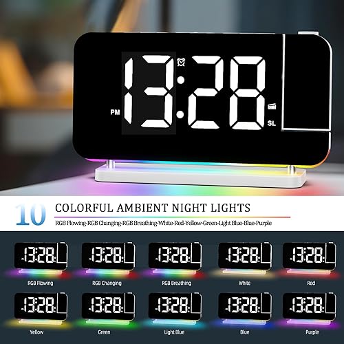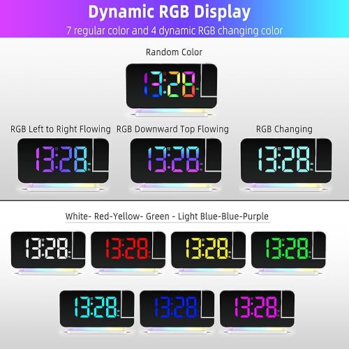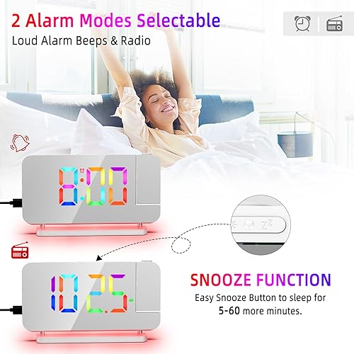 VORRINC Sveglia Radiosveglia digitale con 6 livelli di luminosità dello schermo e 4 di luminosità della proiezione Sveglia a proiezione con luce notturna e funzione snooze Sveglia con proiezione FM