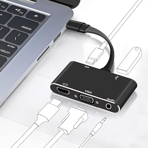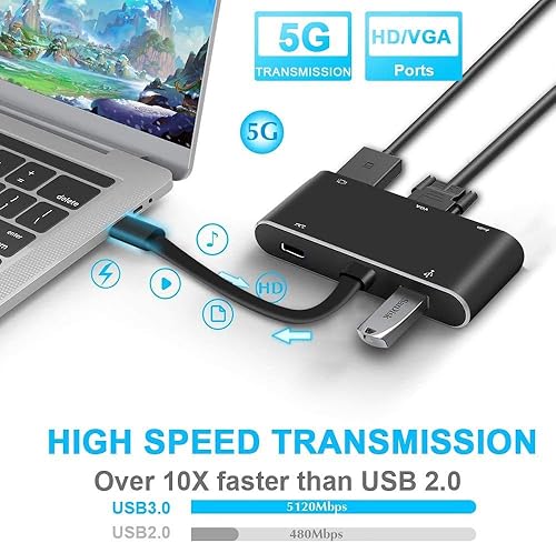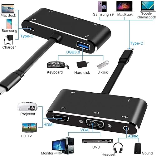 iBosi Cheng Adattatore USB C HDMI, HUB USB C 5 in 1, con 4K HDMI Adattatore VGA, USB 3.0, con Interfaccia Audio, per ChromeBook, Proiettore e Altri Dispositivi USB Tipo-C Adattatore