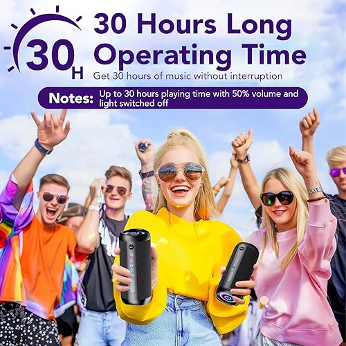 Cassa Bluetooth Portatile 30W, Potente Altoparlante Bluetooth, Doppio basso driver, 30 Ore di Autonomia, IP7 Impermeabile Speaker Bluetooth, RGB Luci, TWS Accoppiamento, AUX, TF Scheda, Nero