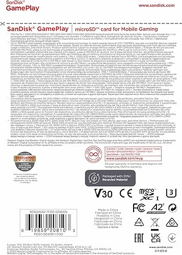 SanDisk 1TB Gameplay scheda microSD, Micro SD per mobile gaming/console portatili, fino a 190 MB/s, AAA-/3D-/VR-Grafik, 4K-UHD-Videos, A2, U3, V30