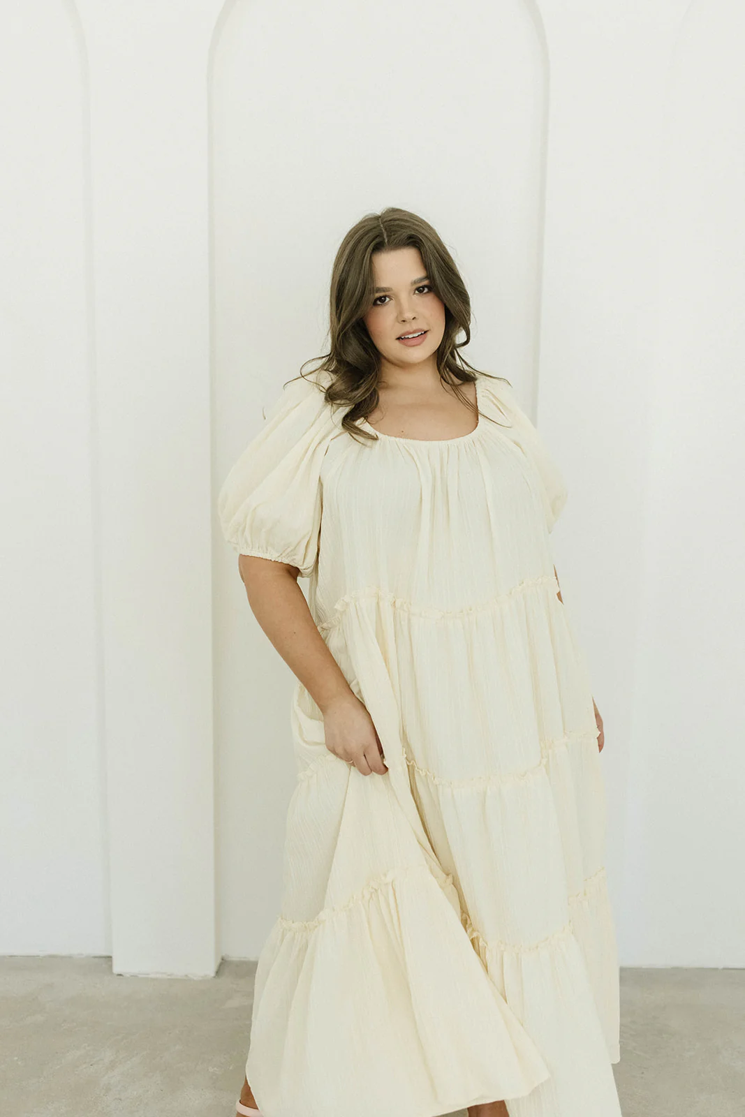 Eva Puffed Sleeve Maxi Dress in Cream - Bump Friendly & Inclusive Sizing (S-3XL)