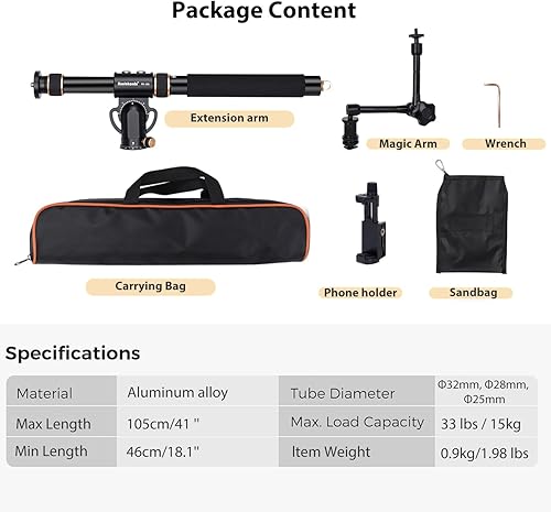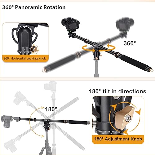 105 cm Braccio di estensione per treppiede Asse centrale orizzontale Girevole a 360° 180° Braccio di estensione per treppiede regolabile verticalmente per fotocamera Fotografia aerea macro